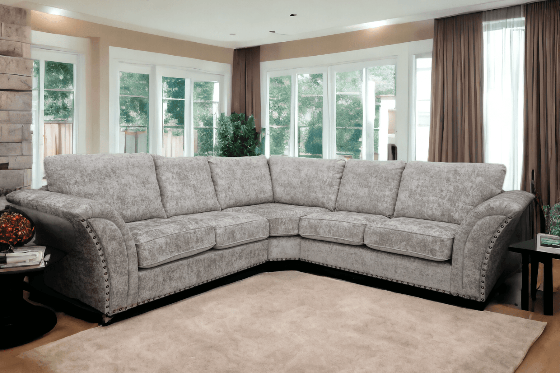 Windsor Truffle Fabric High Back Corner Sofa
